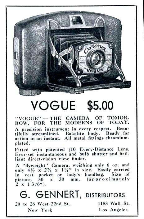 Englantilaisen Coronetin bakeliittinen Vogue lanseerattin markkinoille samana vuonna 1936 kuin Bantam Special, ja mainoksen mukaan se oli tulevaisuuden kuvausväline niille, jotka ymmärsivät silloisen nykyhetken modernismia.